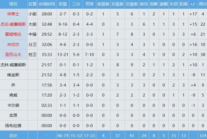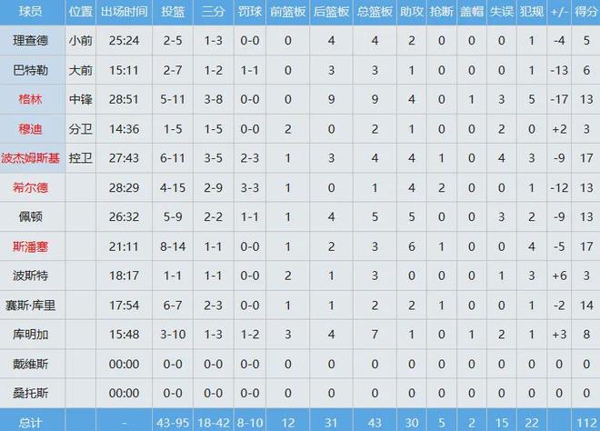 勇士数据如下: