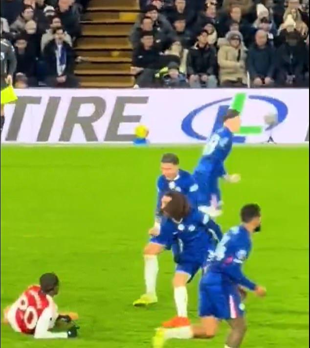 在一次场上事件中,恩佐-费尔南德斯在切尔西禁区边缘成功抢断马杜埃凯,导致后者倒地。
